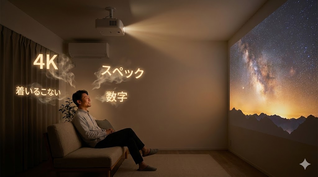 画質のスペックにとらわれるのをやめたとき、あなたのお部屋の壁に、無限に広がる最高の特等席が完成します。