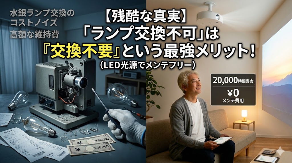 そのため、定期的にランプが切れ、その度に数万円の交換用ランプを買い直す必要がありました。 これはランニングコスト(維持費)という強烈なノイズであり、プロジェクターが一部の愛好家の贅沢品だった最大の理由です。