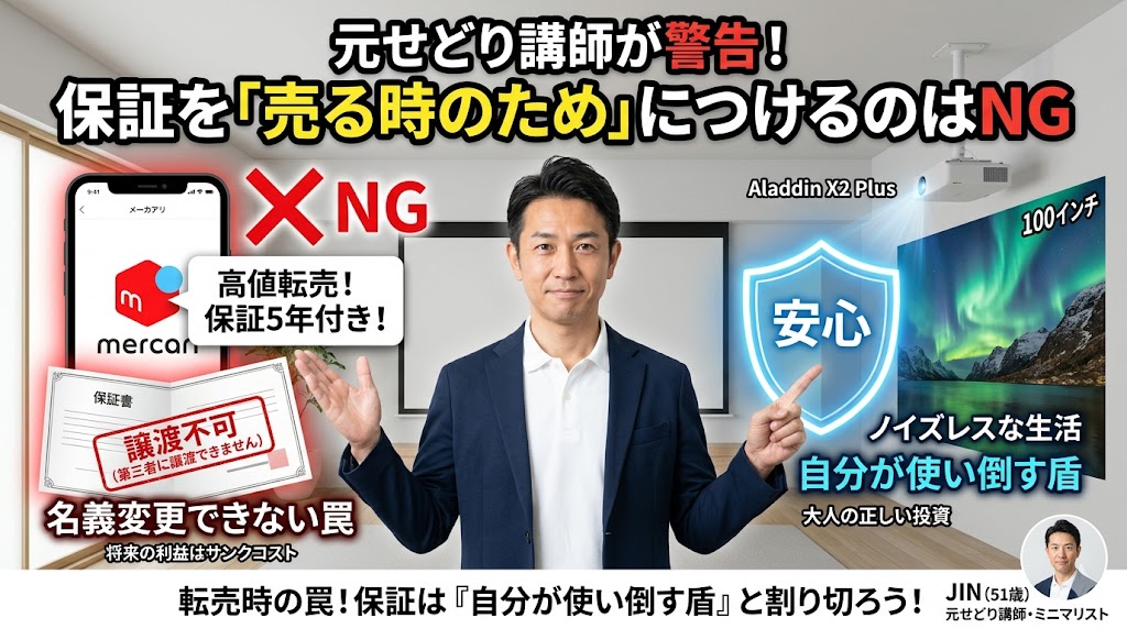 「将来、新しいモデルが出たらメルカリで高く売るために、5年保証をつけておいた方が有利だよね」 この考えは、完全に無駄なサンクコストです。なぜなら、外部の延長保証の多くは「名義が変わった時点(第三者に譲渡した時点)で無効になる」という規約があるからです。