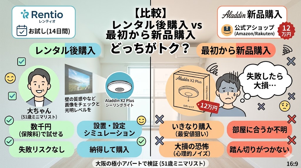 少しでも迷いがあるなら、いきなり買わずに「Rentio(レンティオ)」で一度自宅に招くのが大正解です。