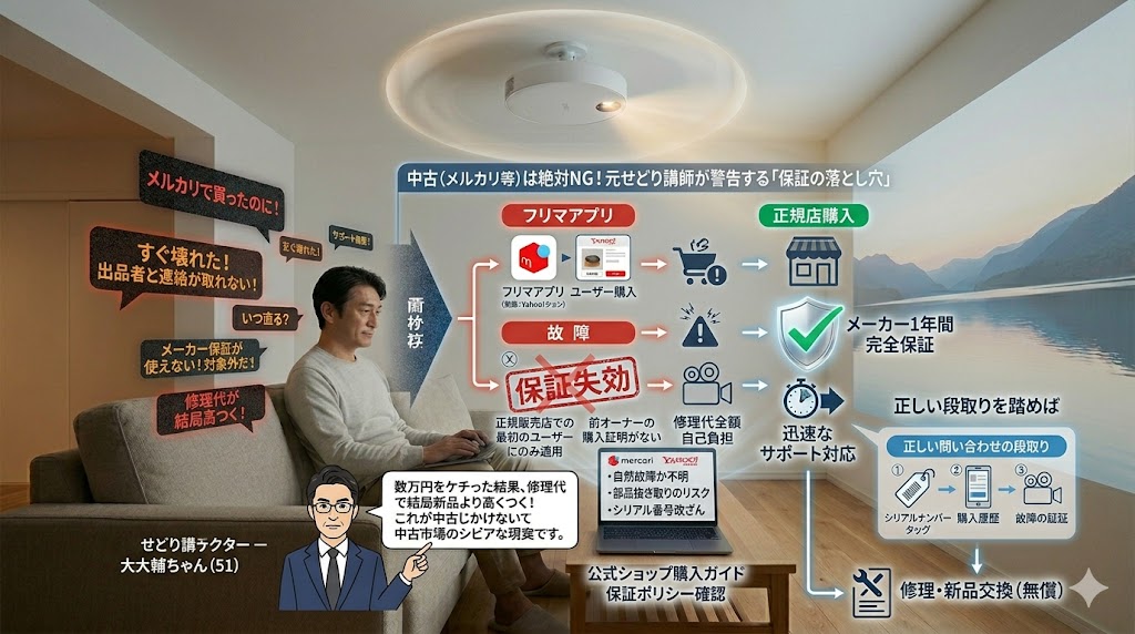 Aladdinのメーカー保証は、「正規販売店で購入した最初のユーザー」にしか適用されません。フリマアプリで買った場合、前オーナーの購入証明がなければ保証は一切受けられず、万が一すぐに壊れても全額自己負担での修理となります。数万円をケチった結果、修理代で結局新品より高くつく。これが中古市場のシビアな現実です。