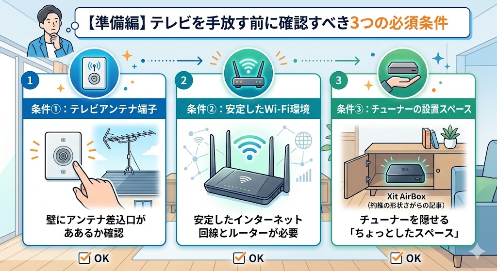 条件①:自宅の壁に「テレビアンテナ端子」があるか?