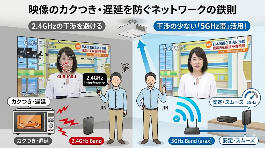 電子レンジ使用時の映像ストップを防ぐ「5GHz帯」の活用